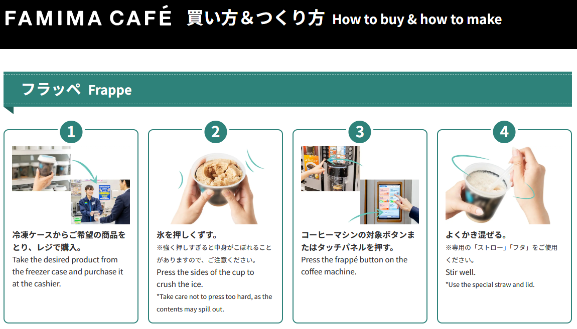 フラッペの作り方はこちらをご覧ください。〈ファミマカフェの作り方〉
